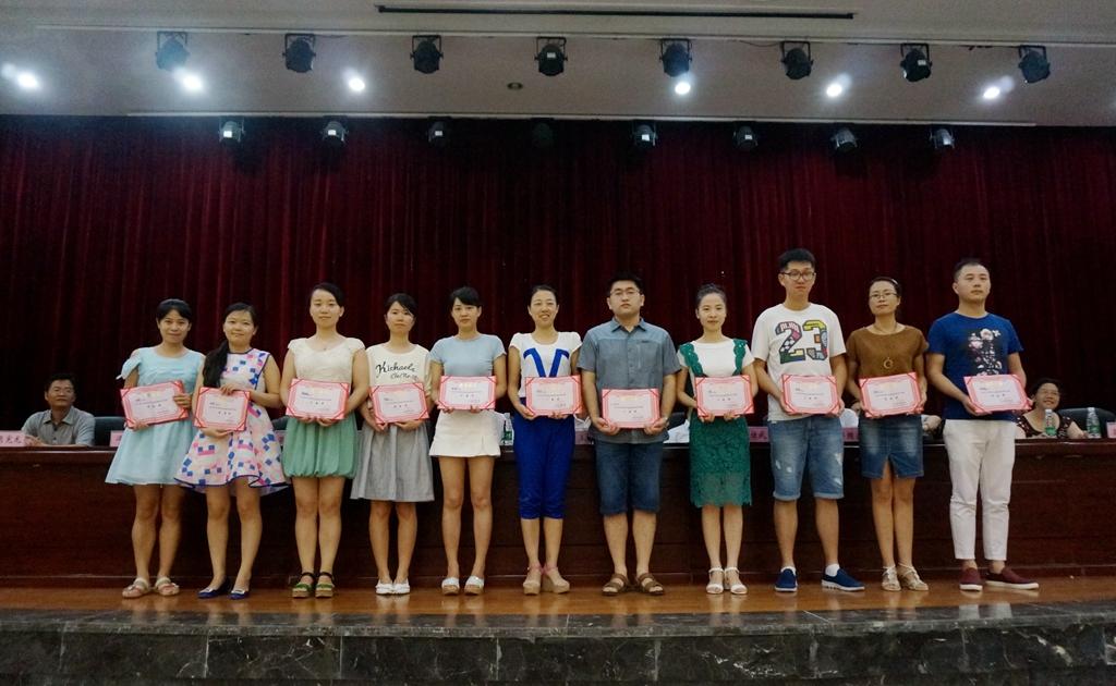 在第二届教学名师评选现场投票活动之后,副院长张圣喜宣读了《关于2016年怀化职业技术学院青年教师说课比赛获奖结果的通报》,院领导分别为我院青年教师说课比赛获奖者颁奖,其中机械与汽车工程系宋玲和电子电气工程系王鹏获得一等奖,信息与艺术设计系丁密和政治理论课部张珊获得二等奖,建筑工程系李文博和人文科技系李微微获得三等奖。